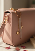 A minimal rose quartz key ring designed for everyday charm & thoughtful gifting.